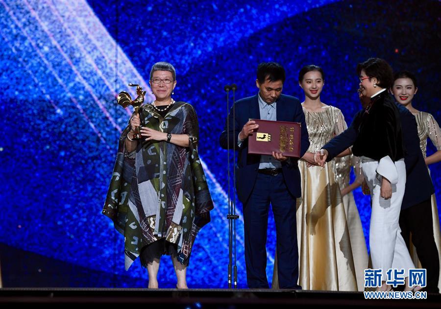 11月23日,最佳中小成本故事片獎(jiǎng)獲獎(jiǎng)電影《紅花綠葉》導(dǎo)演劉苗苗(左一)出席頒獎(jiǎng)典禮。當(dāng)日,第32屆中國電影金雞獎(jiǎng)?lì)C獎(jiǎng)典禮在福建廈門舉行。新華社記者姜克紅攝