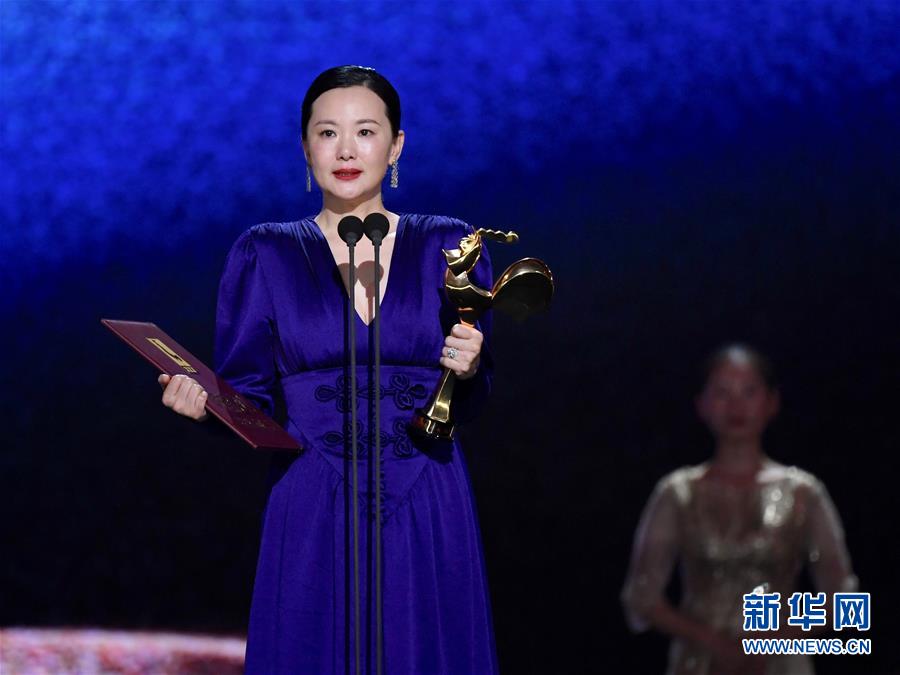 11月23日,電影《地久天長》主演詠梅獲得最佳女主角獎。當日,第32屆中國電影金雞獎頒獎典禮在福建廈門舉行。新華社記者姜克紅攝