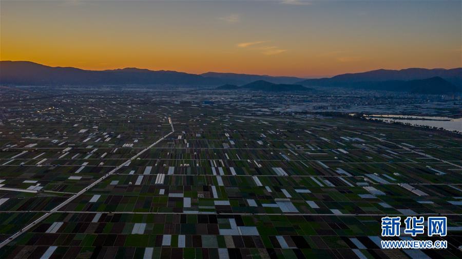 這是云南省玉溪市通??h的田園風(fēng)光(11月23日無人機(jī)拍攝)。初冬時(shí)節(jié),云南省玉溪市通海縣風(fēng)景秀麗,山巒、湖水與農(nóng)田組成了一幅美麗的田園詩畫卷。新華社記者胡超攝