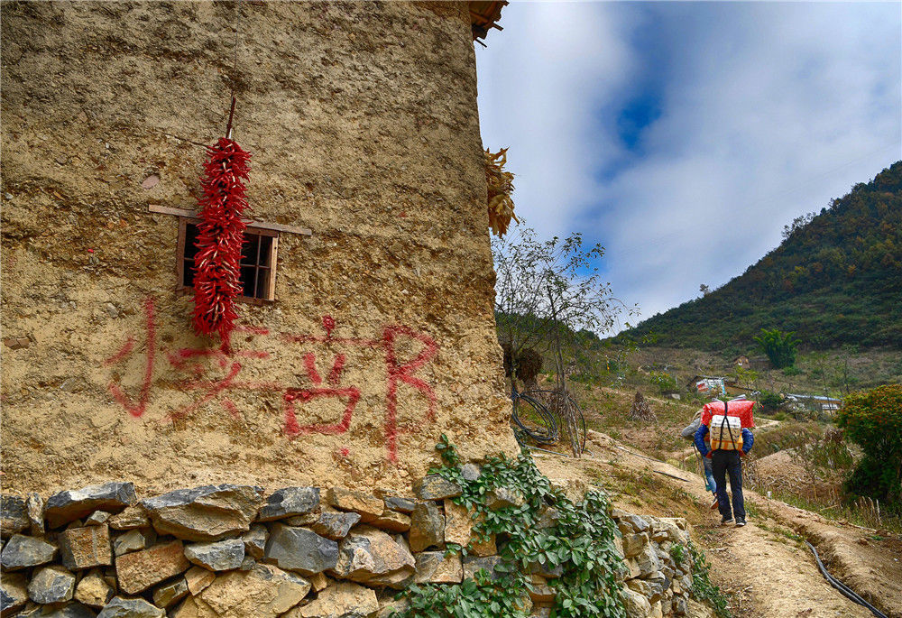 實(shí)拍懸崖村的“雙十一” 背著快遞包裹上天梯