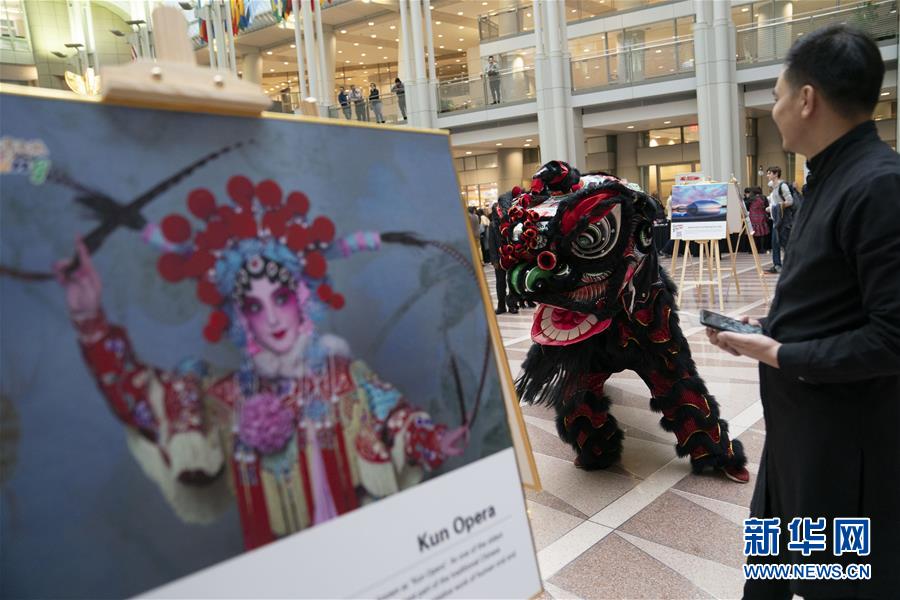 11月22日,在美國華盛頓,演員在“北京日”文化廟會活動上表演舞獅。作為中國北京和美國首都華盛頓締結(jié)友好城市35周年慶祝活動的一部分,“北京日”文化廟會22日在華盛頓羅納德·里根大廈和國際貿(mào)易中心舉行。新華社記者劉杰攝