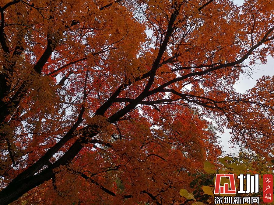 未名湖畔紅葉多姿、美麗寧?kù)o。
