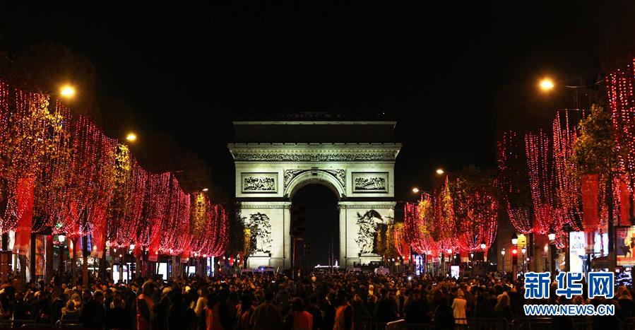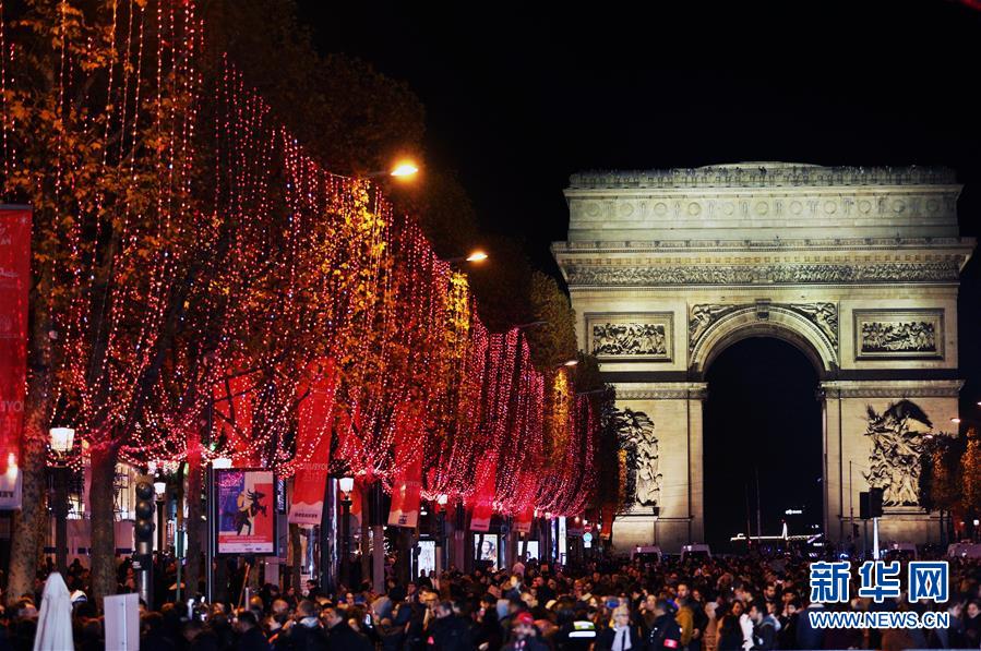 11月24日,在法國巴黎,人們在香榭麗舍大街上參加點燈儀式。當(dāng)日,法國巴黎香榭麗舍大街點亮彩燈迎圣誕。從即日起至1月8日,整條香榭麗舍大街都將被喜慶的節(jié)日燈飾點亮。新華社記者高靜攝
