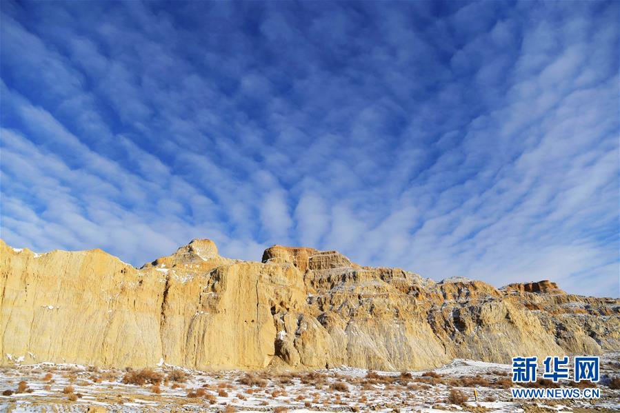 11月26日拍攝的新疆福??h烏倫古湖海上魔鬼城景區(qū)美景。福??h烏倫古湖海上魔鬼城景區(qū)位于新疆阿勒泰地區(qū)福??h吉力湖東岸,有著獨(dú)特的雅丹地貌和水域景觀(guān),是當(dāng)?shù)刂穆糜蝿俚亍P氯A社記者沙達(dá)提攝