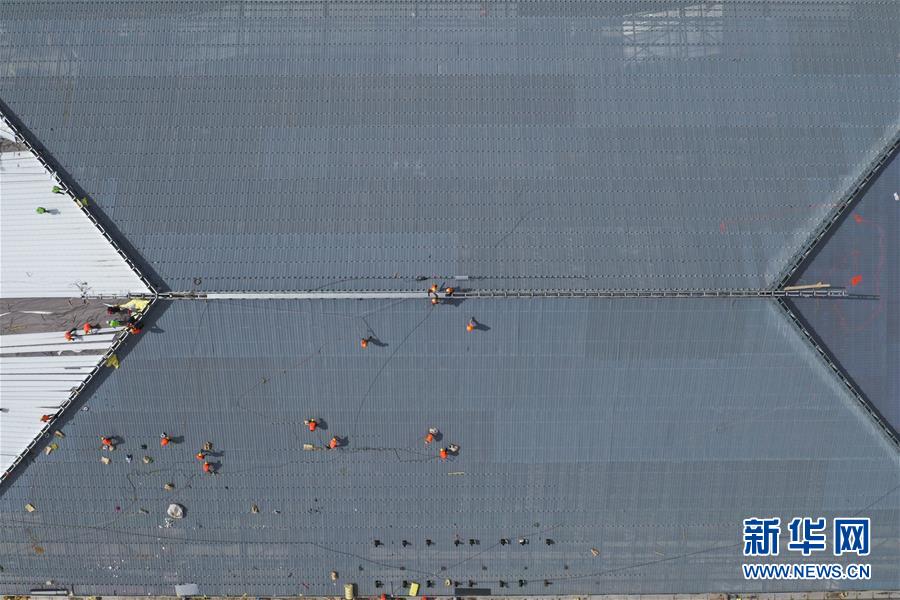 (2018年)11月1日,中鐵三局的工人在京張高鐵河北懷來段鋪軌現(xiàn)場工作(無人機(jī)拍攝)。當(dāng)日,由中鐵三局承建的京張高鐵全線鋪軌工程正式開始。京張高鐵是國家重點建設(shè)項目,是2022年北京冬奧會的重要交通保障線。京張高鐵全長174公里,建成后,乘高鐵從北京到張家口的時間將縮短到50分鐘,對于助力奧運(yùn)、促進(jìn)京津冀一體化發(fā)展、連接西部都具有十分重要的戰(zhàn)略意義。