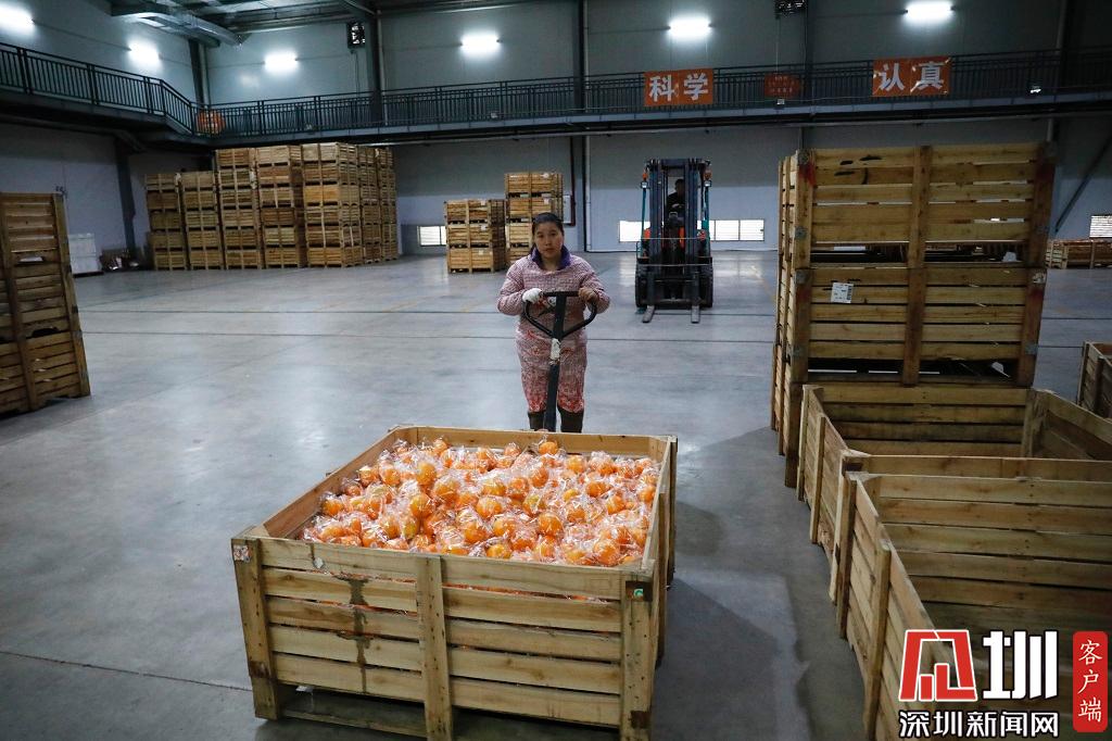 一位工作人員正在運送橙子。