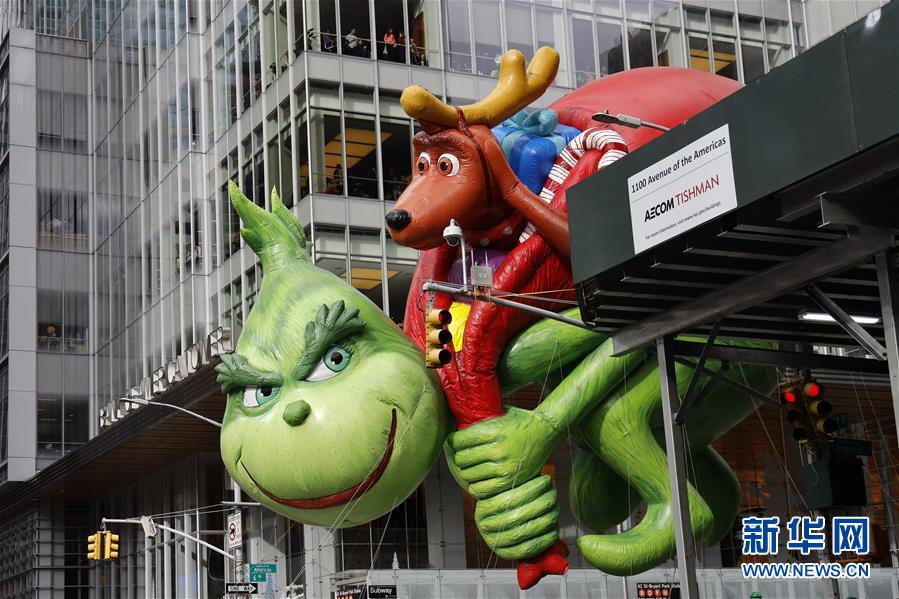11月28日,在美國紐約舉行的感恩節(jié)大游行上,卡通氣球行進(jìn)在曼哈頓街頭。 新華社記者 李木子 攝