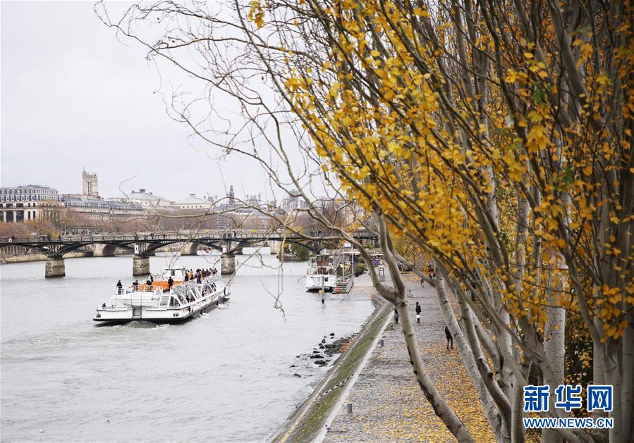 11月27日,在法國巴黎,游船在塞納河上行駛。新華社記者高靜攝