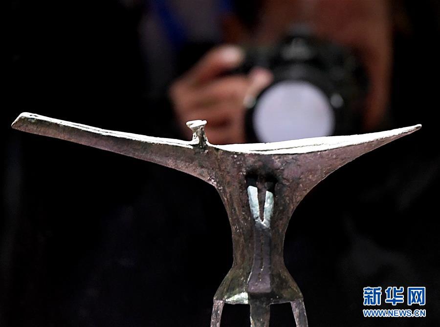 10月19日,參觀(guān)者在二里頭夏都遺址博物館內(nèi)拍攝展品“乳釘紋銅爵”。新華社記者李安攝