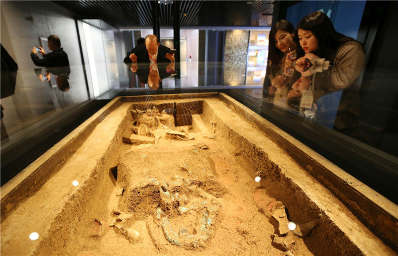 參觀(guān)者在二里頭夏都遺址博物館內(nèi)參觀(guān)(10月19日攝)。新華社記者李安攝