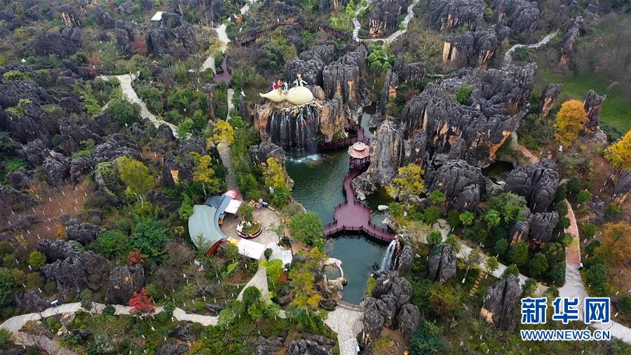 這是云南石林彝族自治縣黑石箐石林景觀(11月28日無人機拍攝)。新華社記者張愛林攝