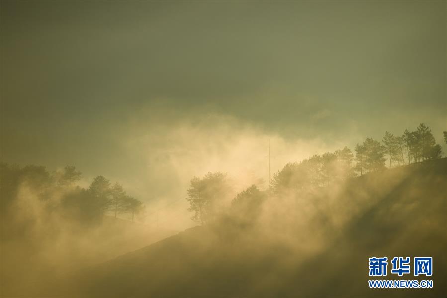 福建省武夷山的茶山云霧繚繞,在朝陽照射下如夢(mèng)如幻(11月17日攝)。新華社記者宋為偉攝