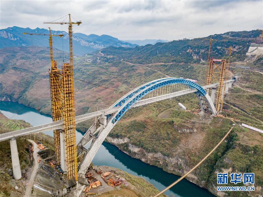 12月2日,一輛試驗列車駛過成貴高鐵西溪河大橋。新華社記者劉續(xù)攝