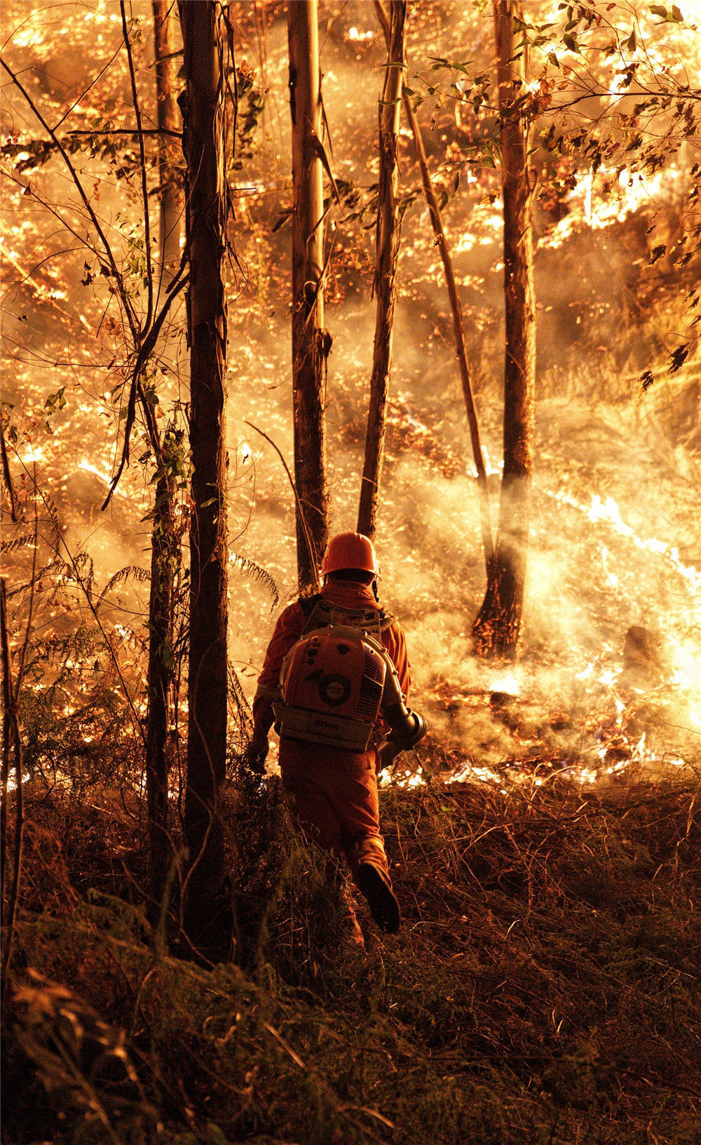 2019年12月7日凌晨一時(shí)多,廣東佛山,來(lái)自英德東華鎮(zhèn)的消防員們摸黑上山作業(yè)。經(jīng)過(guò)大約一個(gè)小時(shí)的奮戰(zhàn)后,山頭明火得到有效控制。