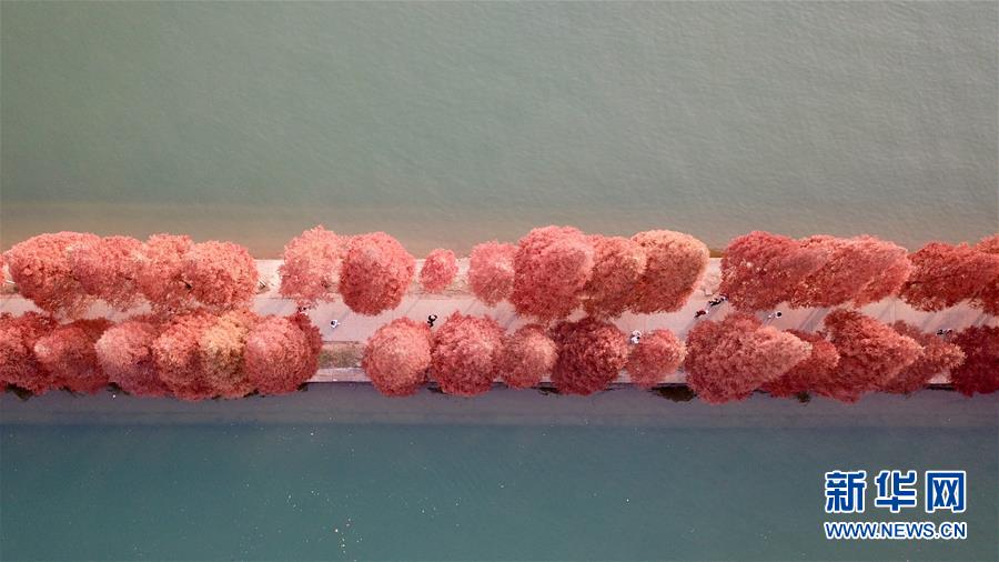 12月10日,游客在湖南烈士公園年嘉湖的游道上行走(無人機(jī)拍攝)。