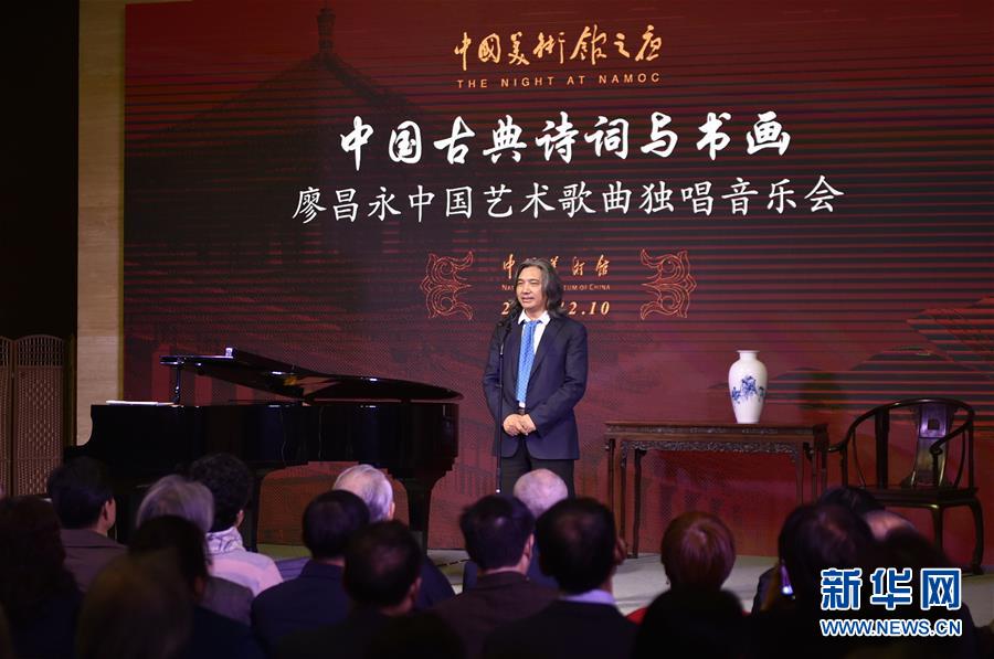 12月10日晚,中國(guó)美術(shù)館館長(zhǎng)吳為山在音樂會(huì)現(xiàn)場(chǎng)致辭。 當(dāng)晚,中國(guó)古典詩詞與書畫——廖昌永中國(guó)藝術(shù)歌曲獨(dú)唱音樂會(huì)在北京中國(guó)美術(shù)館舉行。 新華社記者 魯鵬 攝