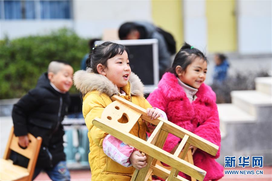 12月12日,中益鄉(xiāng)小學(xué)的同學(xué)們搬著小椅子前往操場觀看文藝表演。新華社記者 王全超 攝