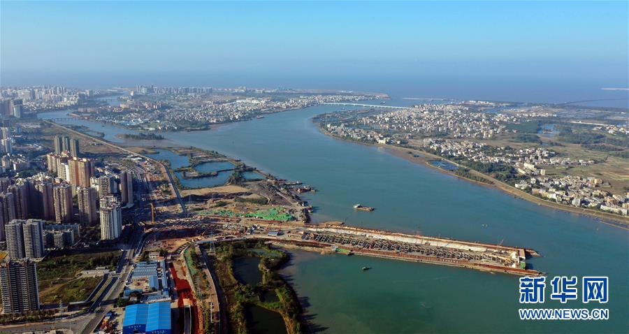 正在施工的??谖拿鳀|越江通道項目(12月14日無人機拍攝)。 新華社記者 郭程 攝