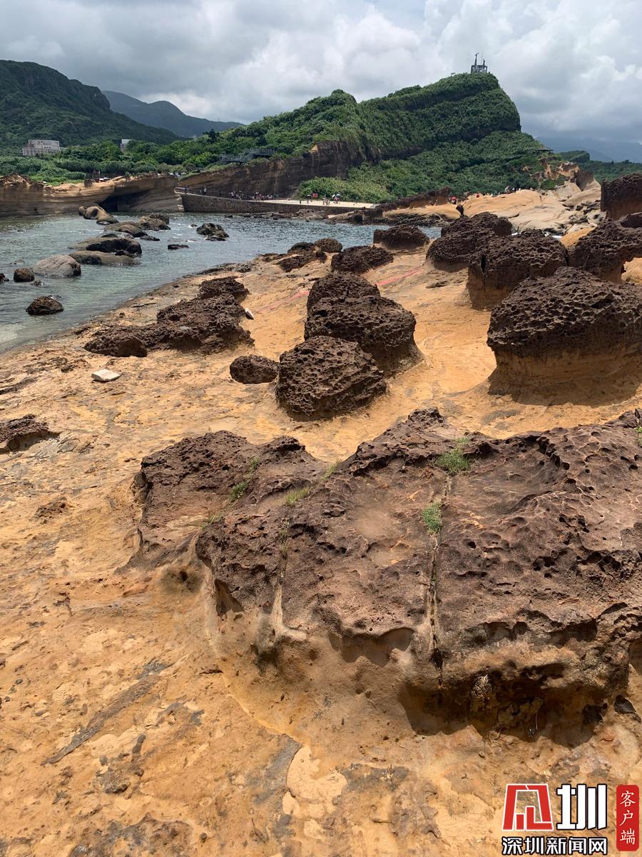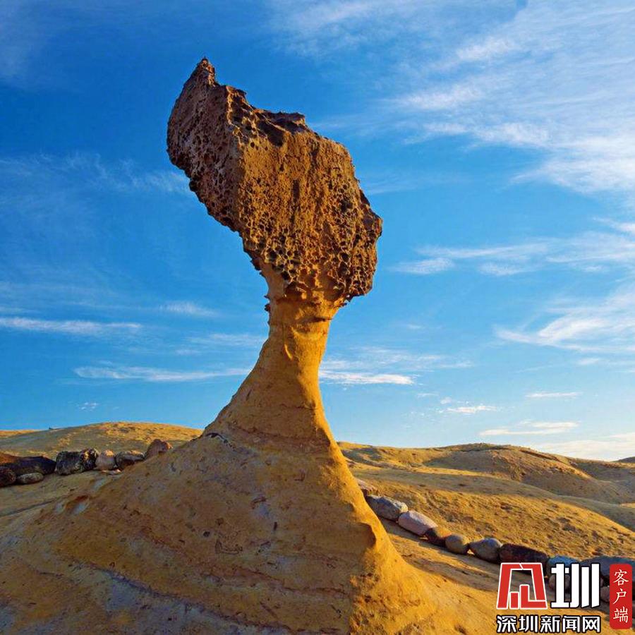 野柳地質(zhì)公園(Yehliu Geopark),位于臺灣新北市萬里區(qū),野柳是突出海面的岬角(大屯山系),長約1700公尺,由于海蝕風(fēng)化及地殼運動等作用,造就了海蝕洞溝、蜂窩石、燭狀石、豆腐石、蕈狀巖、壺穴、溶蝕盤等綿延羅列的奇特景觀。孫遜攝