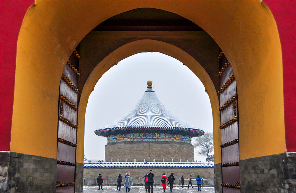 2019年11月30日,北京,初雪過(guò)后,天壇公園銀裝素裹,白雪古建相互映襯,景色迷人。時(shí)永平/千龍圖像/視覺(jué)中國(guó)