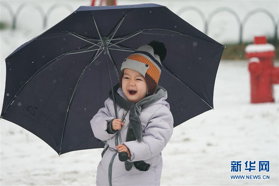 12月16日,在北京天壇公園,一名小朋友撐傘玩耍。當日,北京迎來降雪天氣。新華社記者鞠煥宗攝