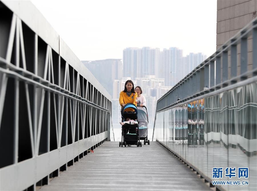 在澳門(mén)科學(xué)館附近,兩名女士推著嬰兒車(chē)過(guò)橋(12月17日拍攝)。新華社記者李鋼攝