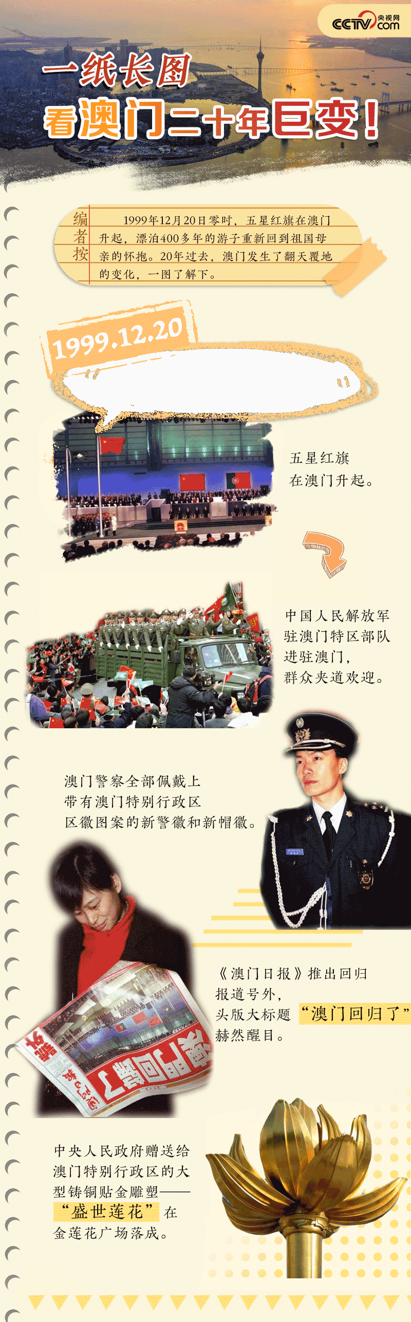 央視網(wǎng)消息:時(shí)光飛逝,澳門(mén)回歸祖國(guó)已二十載。