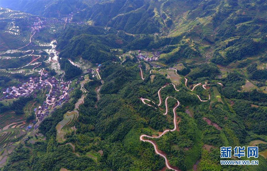 這是融水苗族自治縣桿洞鄉(xiāng)歸江村的村屯公路(6月19日無人機(jī)拍攝)。新華社記者黃孝邦攝