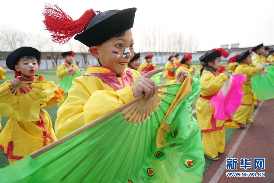12月19日,河北省灤州市小閆營小學(xué)學(xué)生在排練地秧歌。 國家級非遺地秧歌是冀東地區(qū)廣為流傳的一種民間藝術(shù)。近年來,河北省灤州市響嘡街道小閆營小學(xué)將地秧歌引入校園,組建學(xué)生興趣社團(tuán),并聘請地秧歌藝人定期為孩子們授課,讓孩子們近距離感受家鄉(xiāng)傳統(tǒng)文化的魅力。 新華社記者 牟宇 攝