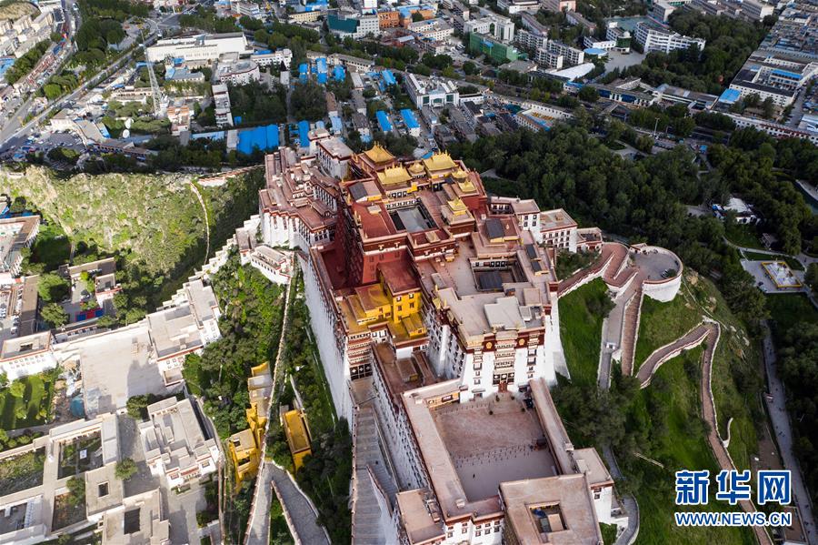 8月10日無(wú)人機(jī)拍攝的布達(dá)拉宮。新華社記者張汝鋒攝