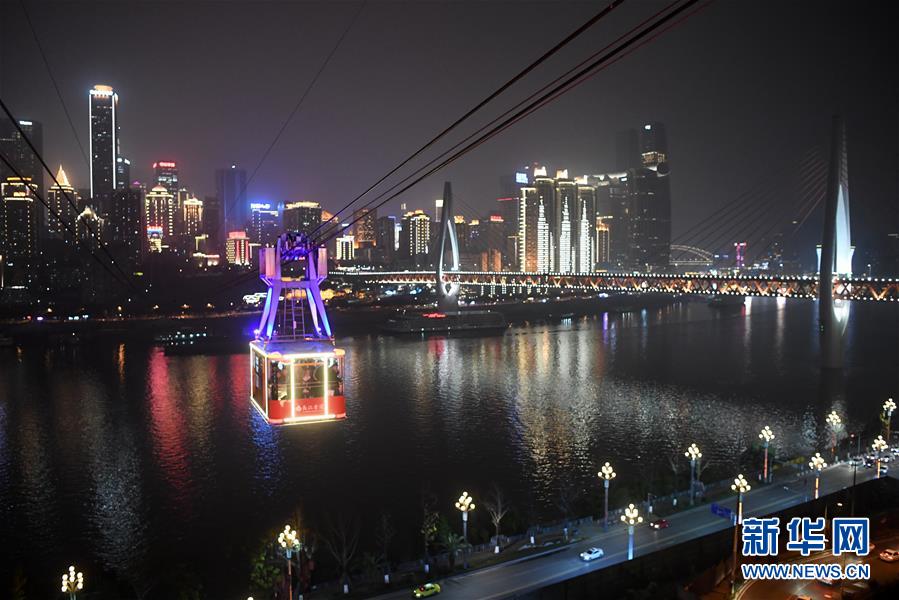 12月23日,“長江索道”在重慶夜空中運行。
