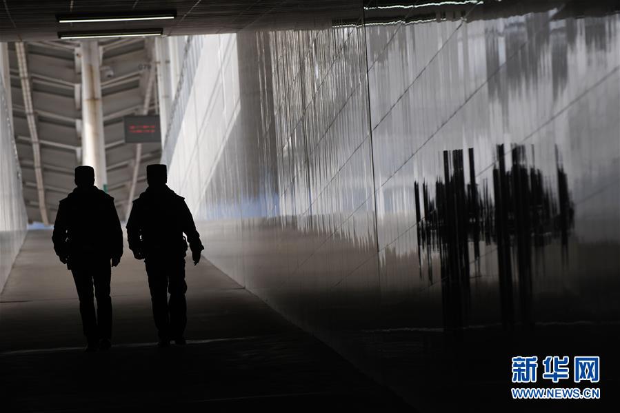 金寨火車(chē)站派出所民警鄧成成(右)與王晨旭在站內(nèi)執(zhí)勤(12月19日攝)。新華社記者張端攝