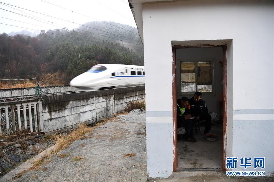 金寨火車(chē)站派出所民警張嗣一在站臺(tái)接車(chē)(12月19日攝)。安徽合肥鐵路公安處金寨火車(chē)站派出所位于大別山腹地。在這里,除了所領(lǐng)導(dǎo)外,青年民警平均年齡不到29歲。他們遠(yuǎn)離家鄉(xiāng),扎根大山深處的小站派出所,戰(zhàn)斗在守護(hù)客運(yùn)平安的第一線。新華社記者張端攝