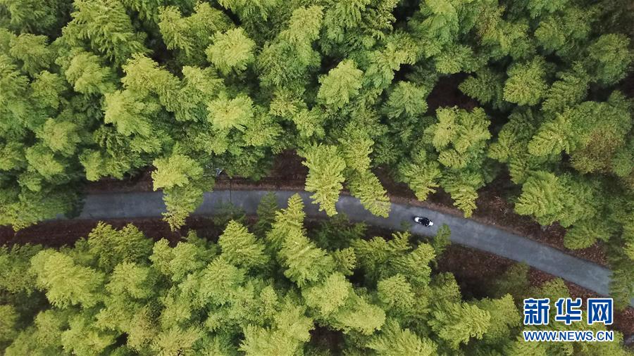 12月18日,常曉龍騎著電動車去巡線(無人機拍攝)。新華社記者張端攝