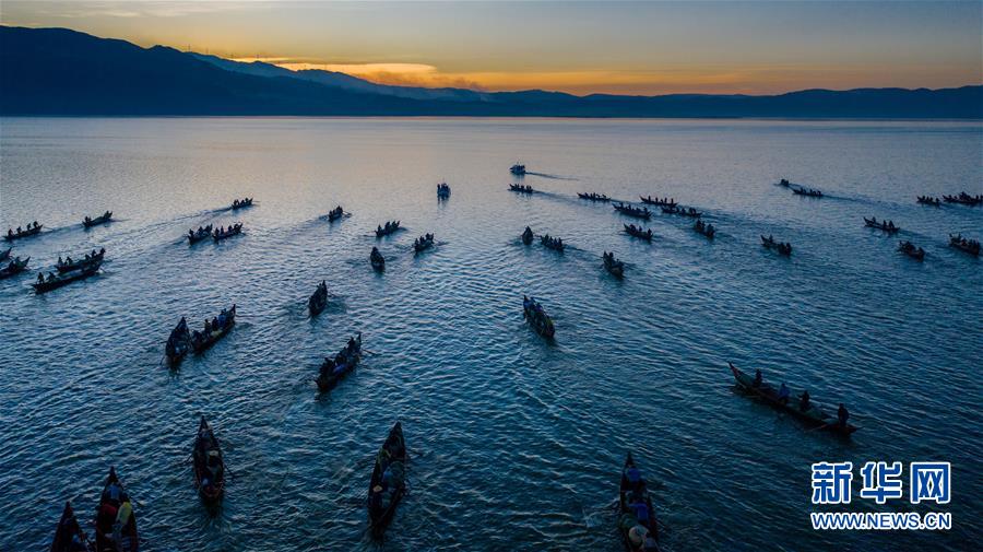 12月25日,漁船駛?cè)胄窃坪o人機拍攝)。當日,位于云南省玉溪市江川區(qū)的星云湖迎來一年一度的開湖捕魚季,600余艘漁船駛?cè)胄窃坪稉?。星云湖是云南省九大高原湖泊之一,本次開湖捕魚時間將從2019年12月25日持續(xù)至2020年1月23日。新華社記者胡超攝