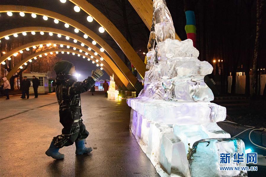 12月24日,在俄羅斯首都莫斯科,小朋友參觀冰雕藝術展。 哈爾濱冰雕藝術展24日在莫斯科開幕,現場展出了哈爾濱大劇院、防洪紀念塔以及莫斯科紅場建筑群等惟妙惟肖的冰雕作品,吸引眾多游客駐足拍照。 參加本次冰雕藝術展的十名冰雕師提前抵達莫斯科,以新中國成立70周年、中俄建交70周年、“一帶一路”倡議等為主題,為莫斯科民眾奉上了精美的新年禮物。 新華社記者 白雪騏 攝