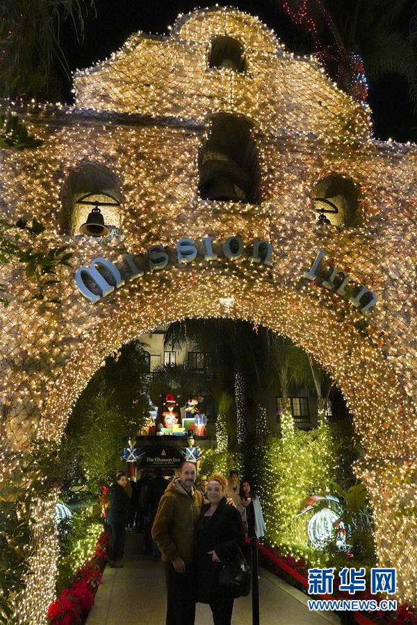 12月29日,人們在美國加利福尼亞州里弗賽德燈光節(jié)上拍照留念。 新華社記者李穎攝
