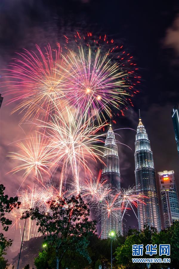 2020年1月1日,焰火在馬來(lái)西亞吉隆坡的馬來(lái)西亞國(guó)家石油公司雙塔旁綻放,迎接新年的到來(lái)。新華社記者朱煒攝