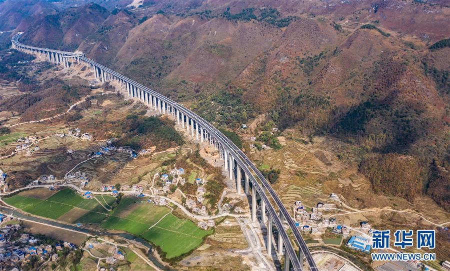 這是中冶集團(tuán)承建的紫望高速火花特大橋(無(wú)人機(jī)照片,1月1日攝)。新華社記者陶亮攝