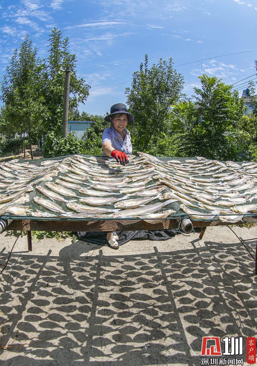 岸上,家家戶戶都在忙著晾曬剛捕撈上來(lái)的毛刀魚、小白魚和武昌魚。
