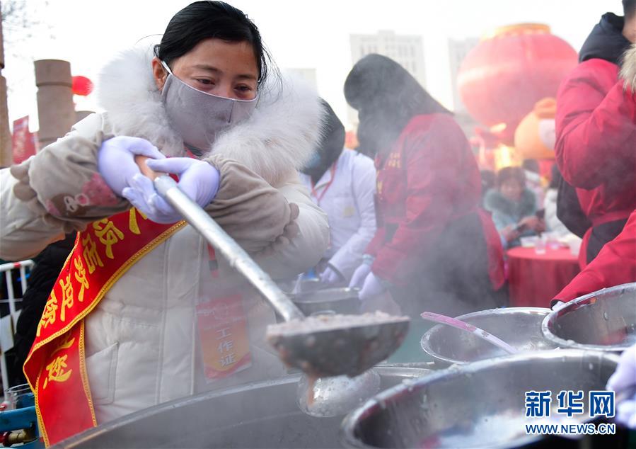 1月2日,工作人員在青海省海東市平安區(qū)“共品臘八粥”活動(dòng)現(xiàn)場(chǎng)為市民盛粥。 當(dāng)日是農(nóng)歷臘月初八,中國傳統(tǒng)臘八節(jié)。 新華社記者 張龍 攝