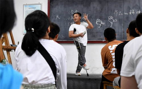 2019年9月9日,在位于西安市的陜西省城市經(jīng)濟(jì)學(xué)校,計(jì)算機(jī)平面設(shè)計(jì)專業(yè)的美術(shù)老師王旭陽(yáng)在給新生講授繪畫基礎(chǔ)知識(shí)。該校是西安唯一一所針對(duì)殘障人士設(shè)立的特殊教育中等職業(yè)學(xué)校。新華社記者劉瀟攝
