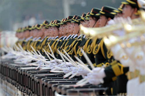 2019年10月1日,慶祝中華人民共和國(guó)成立70周年大會(huì)在北京天安門廣場(chǎng)隆重舉行。這是女兵方隊(duì)接受檢閱。新華社記者王毓國(guó)攝