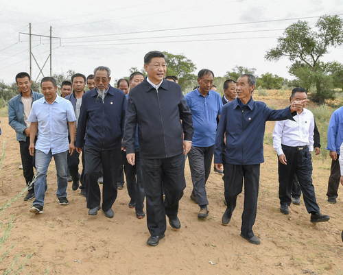 2019年8月19日至22日,中共中央總書記、國(guó)家主席、中央軍委主席習(xí)近平在甘肅考察。這是21日上午,習(xí)近平在武威市古浪縣八步沙林場(chǎng)察看林場(chǎng)整體風(fēng)貌,聽取武威市防沙治沙整體情況匯報(bào)和八步沙林場(chǎng)“六老漢”三代人治沙造林的感人事跡。新華社記者謝環(huán)馳攝