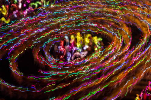 2019年5月28日, 參觀者在貴州省貴陽(yáng)市舉辦的2019中國(guó)國(guó)際大數(shù)據(jù)產(chǎn)業(yè)博覽會(huì)“追夢(mèng)·未來(lái)”數(shù)字藝術(shù)特展上觀看和體驗(yàn)藝術(shù)作品《宇宙深空》。新華社記者楊文斌攝