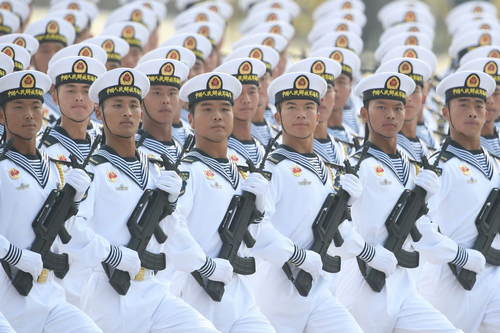 2019年10月1日,慶祝中華人民共和國(guó)成立70周年大會(huì)在北京天安門廣場(chǎng)隆重舉行。這是海軍方隊(duì)接受檢閱。新華社記者劉大偉攝