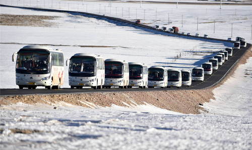 2019年12月23日拍攝的西藏那曲市雙湖縣牧民的遷徙車隊(duì)。西藏那曲市雙湖縣嘎措鄉(xiāng)、措折羌瑪鄉(xiāng)、雅曲鄉(xiāng)共2900人,告別了平均海拔5000米的家鄉(xiāng),經(jīng)過近千公里搬遷到海拔相對(duì)較低的藏南雅魯藏布江南岸的貢嘎縣境內(nèi)。這是西藏自治區(qū)近年來(lái)實(shí)施的極高海拔生態(tài)搬遷項(xiàng)目之一,雙湖縣三個(gè)鄉(xiāng)的整體搬遷是其中人數(shù)最多、跨度最遠(yuǎn)的一次搬遷。新華社記者覺果攝