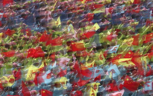 2019年10月1日,慶祝中華人民共和國(guó)成立70周年大會(huì)在北京天安門廣場(chǎng)隆重舉行。這是行進(jìn)中的群眾游行方陣。新華社記者蘭紅光攝