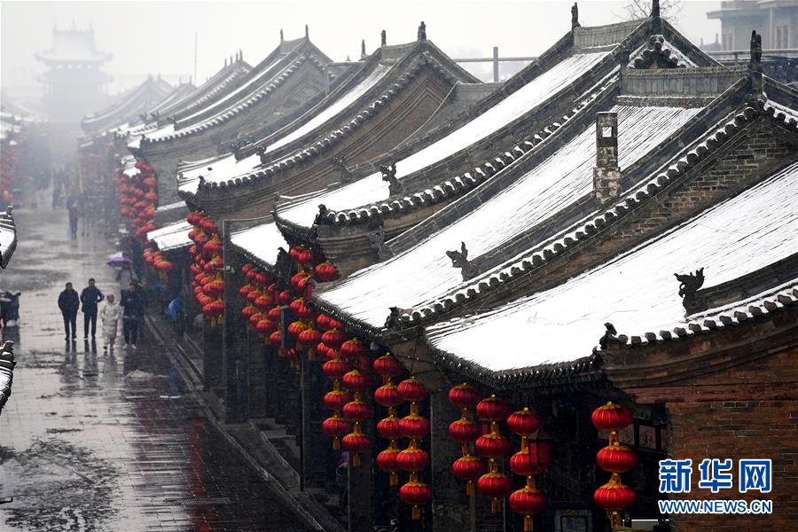 當日,山西省平遙縣迎來降雪,雪中的平遙古城銀裝素裹,美景如畫。平遙古城是目前中國保存最完整的古代縣級城池之一,1997年被列入世界文化遺產(chǎn)名錄。