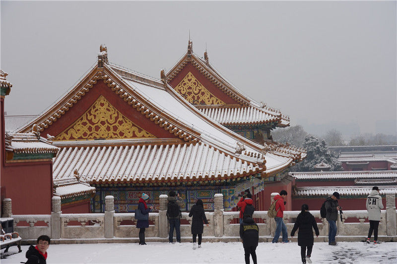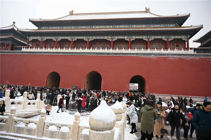 初雪后故宮銀裝素裹游客排隊(duì)打卡
